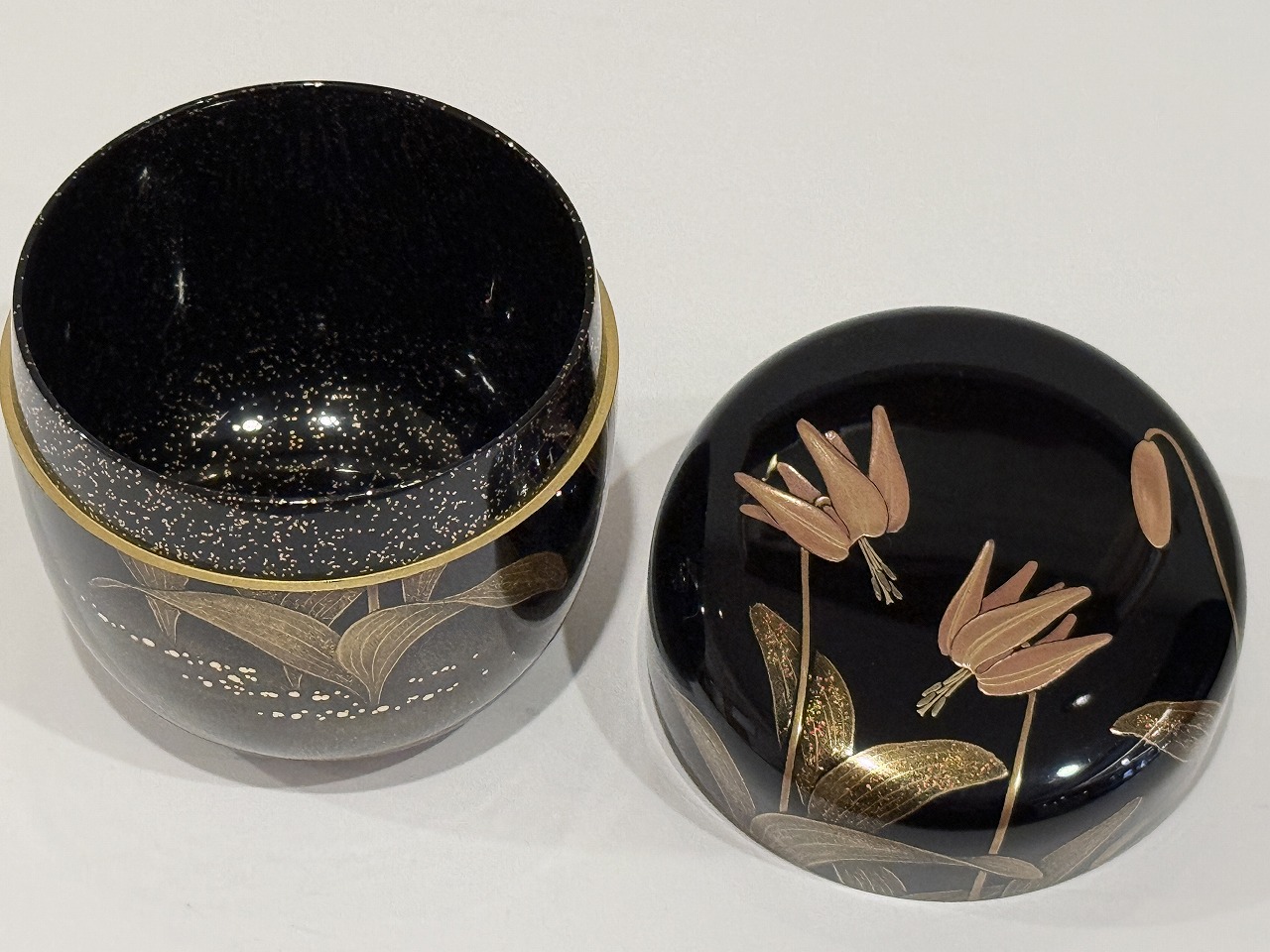 片栗の花が蒔絵で施された季節感を楽しめる逸品です