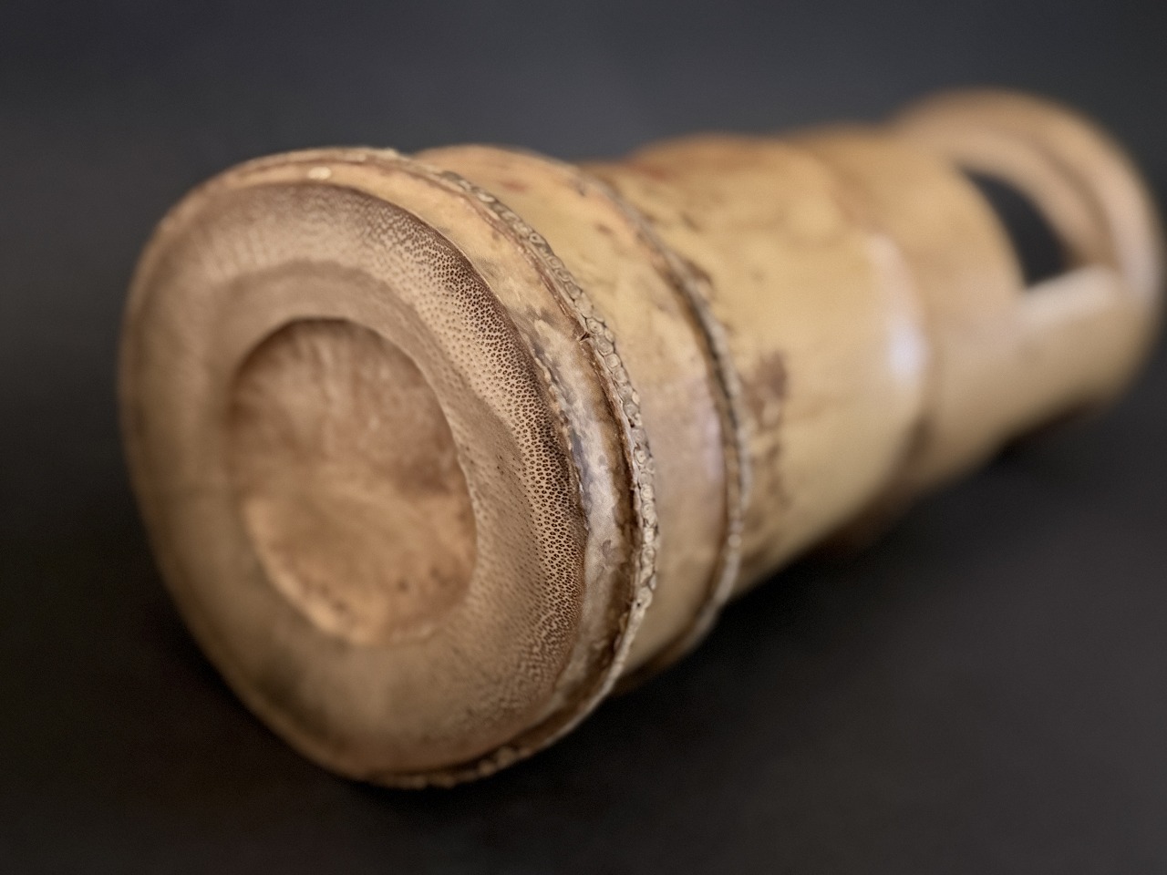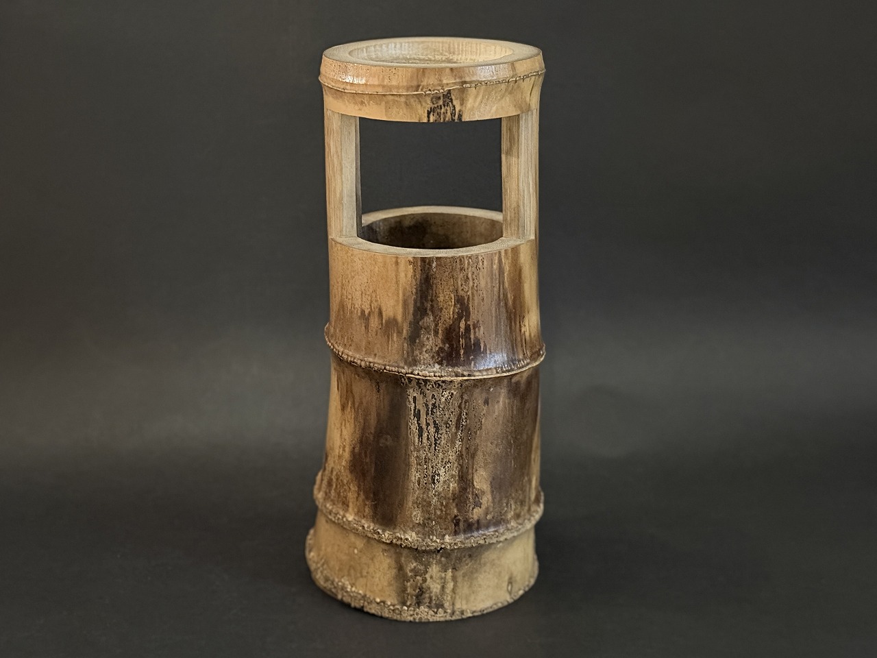 比較的少ない置筒花入は小兵衛下削りの侘びた趣の竹花入で惺斎宗匠の銘「早梅」とございます