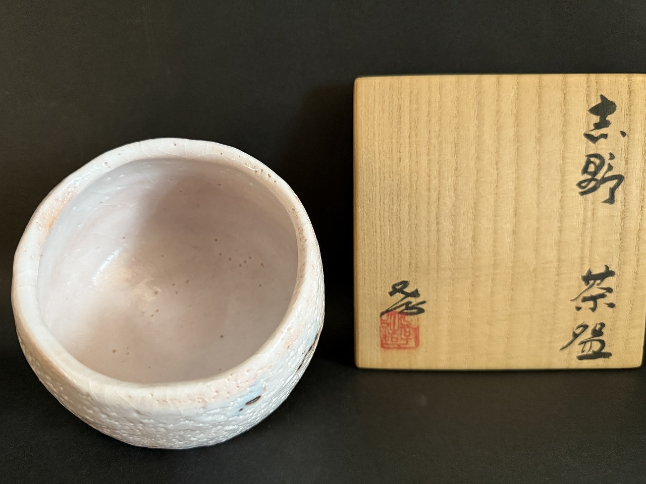 平柴谷作品ではございませんが発色も良く先生らしい洒脱な絵付けが楽しめる志野茶盌の名品です