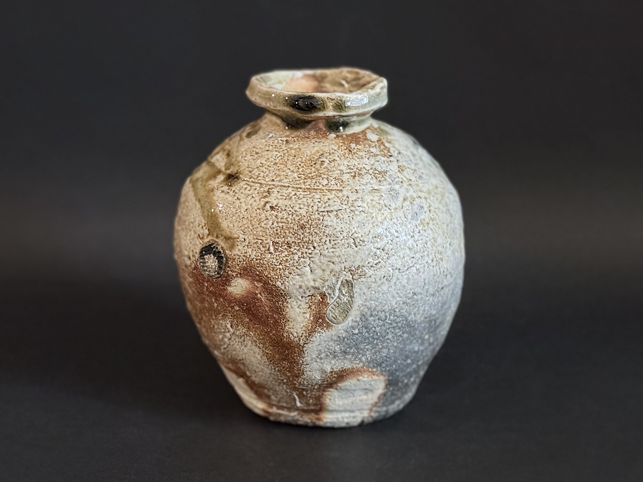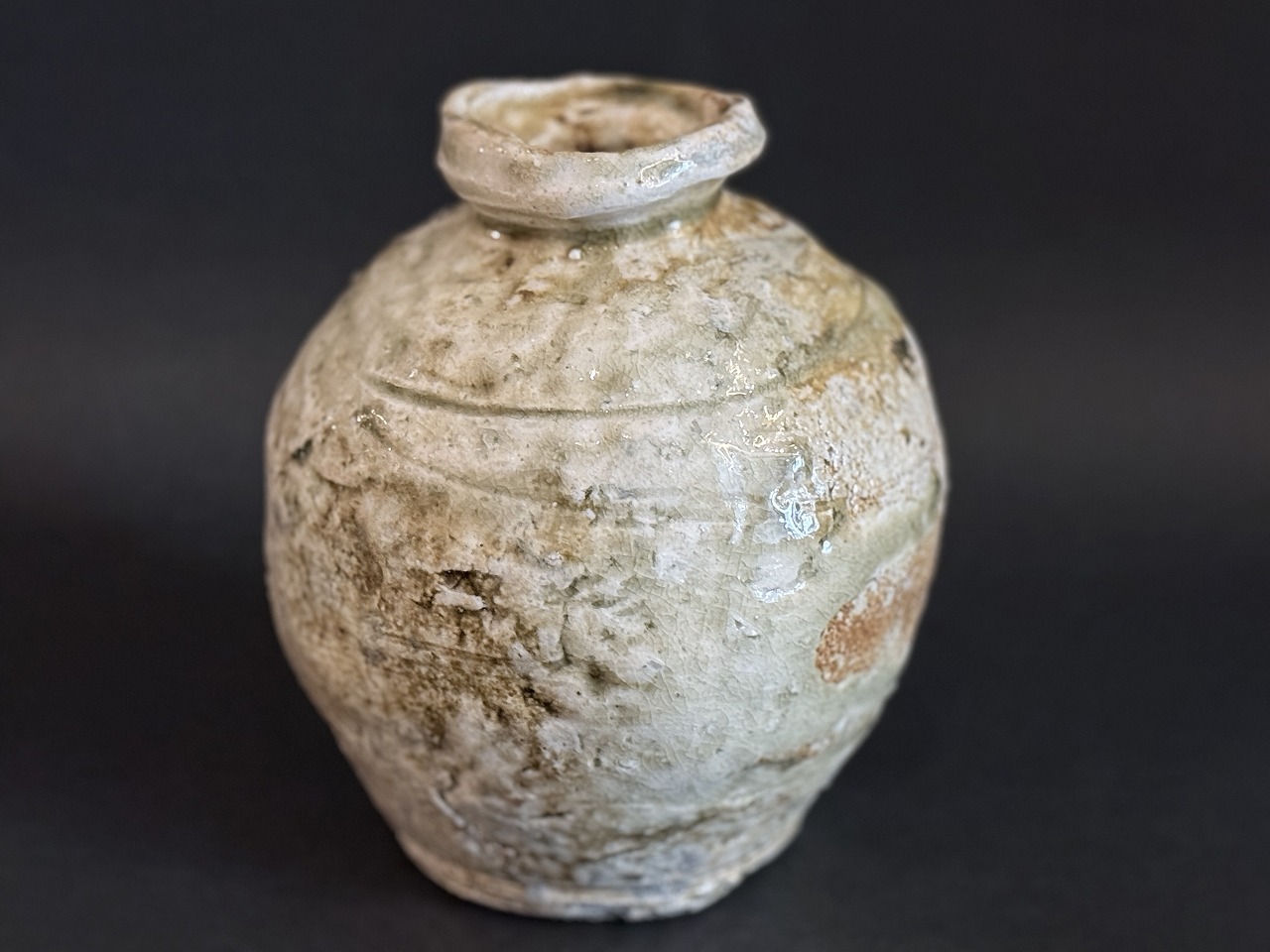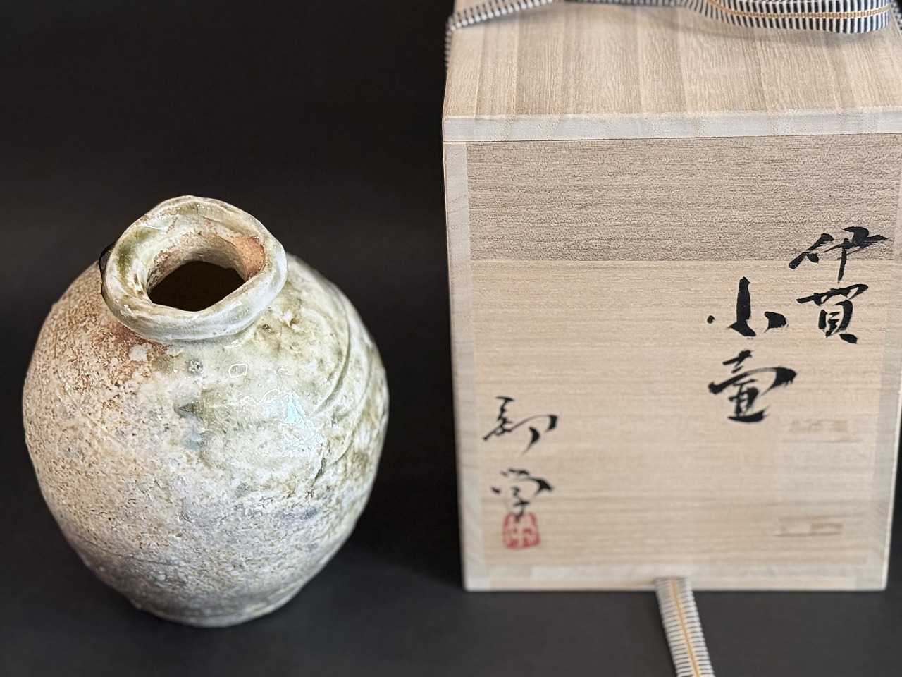 伊賀本来の焼だけで真価を問うような本作品は自然釉もよく溶けてビードロが綺麗に発色した見所の多い名品です
