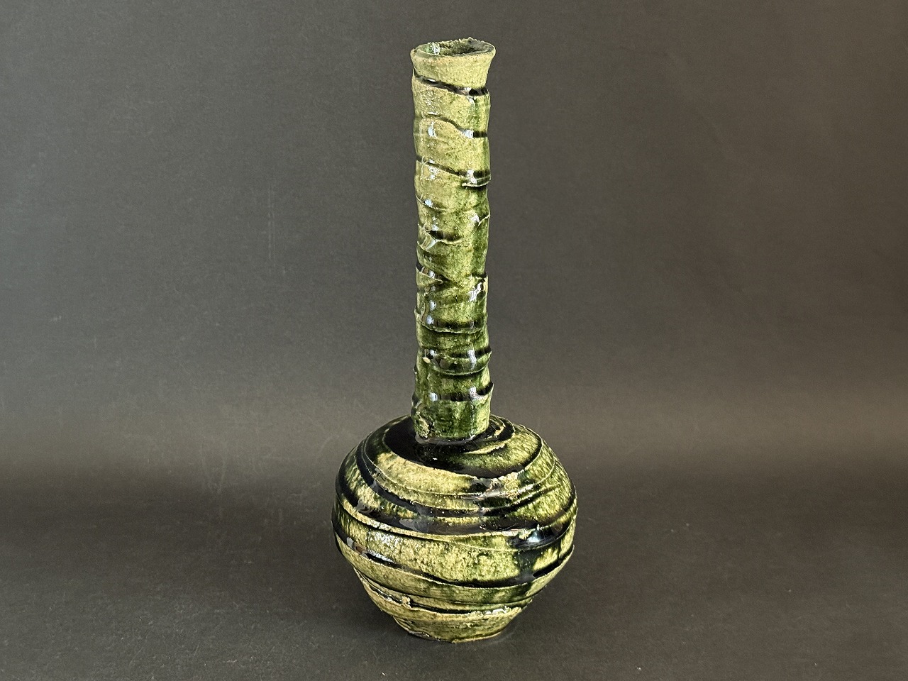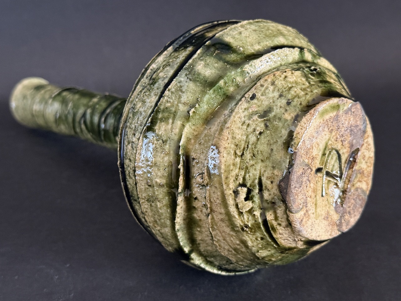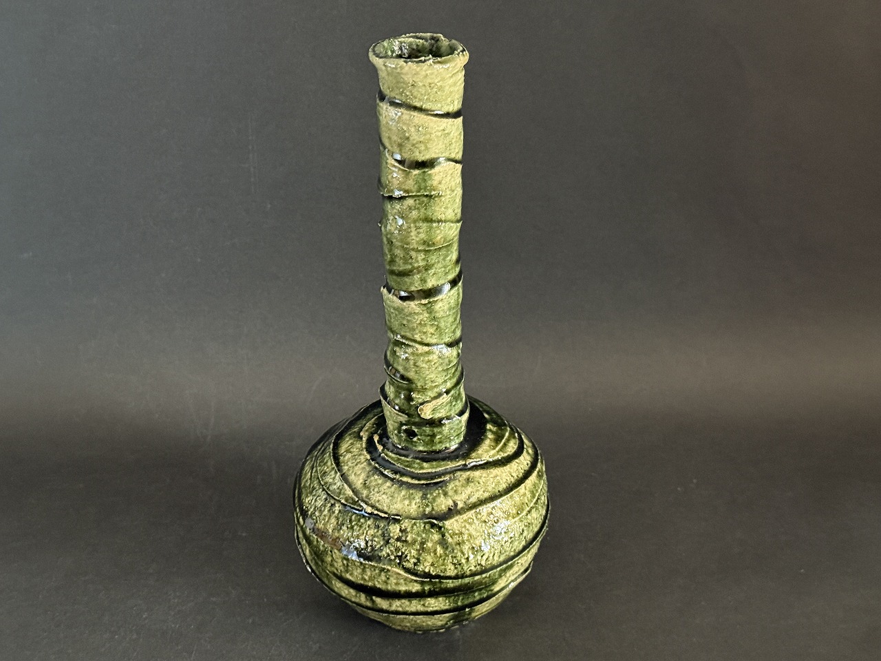 明るい色調に轆轤目が際立つ氏ならではの総織部一輪生です