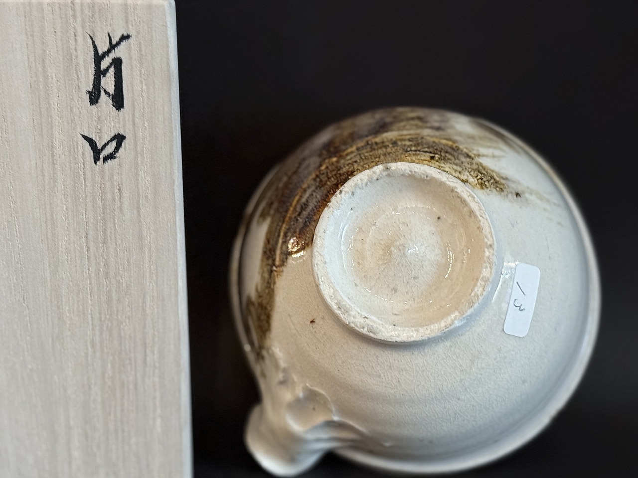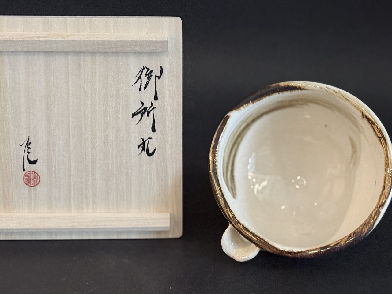 高麗、李朝陶磁器の写しに定評のある氏の片口は手取りが軽く扱い易い逸品で、共箱には御所丸と記してあります