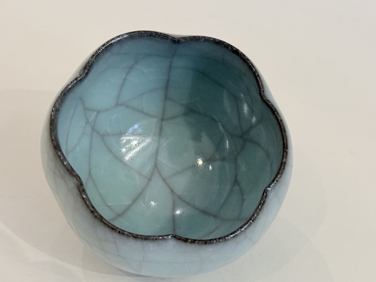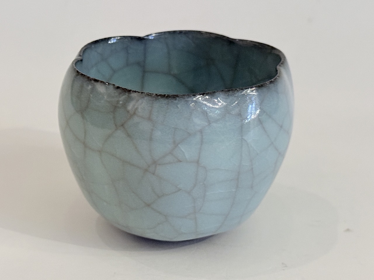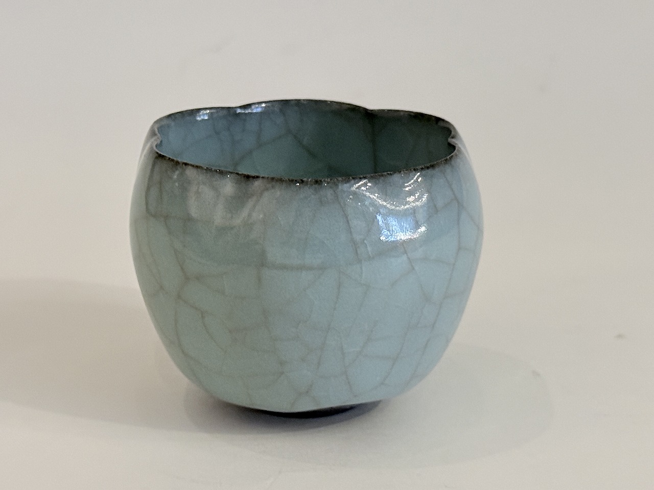 爽やかな色調の青瓷ぐい吞は輪花形の扱い易い逸品です