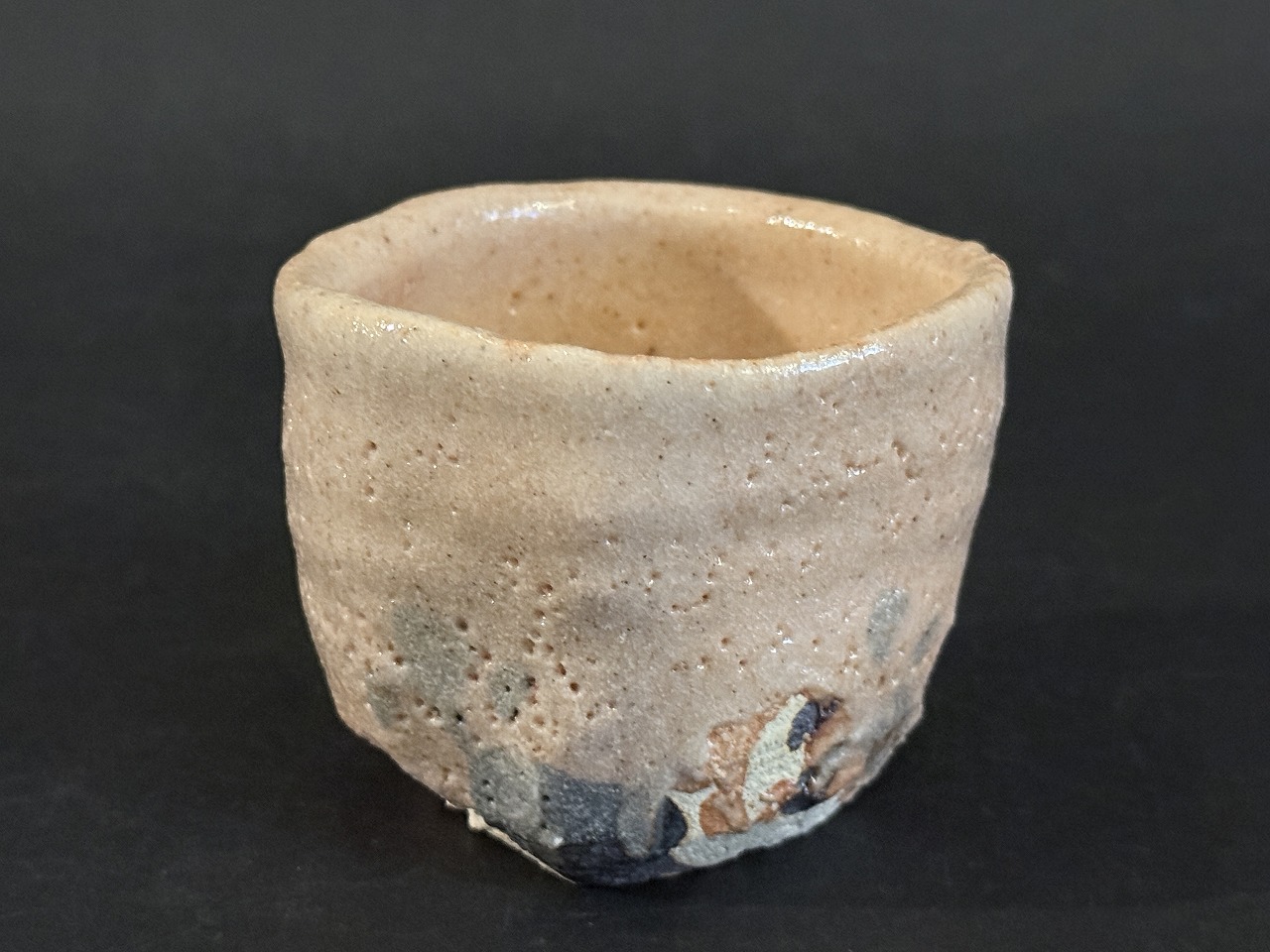 ほんのり発色した桜色に控えめな鬼板が入った優しい趣の志野ぐい呑は収まりがよく扱い易い逸品です
