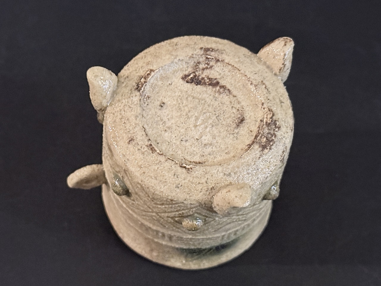 銅器を意匠とした発色の良い繊細な姿の黄瀬戸ぐい吞は手取りも良く使っても飾ってもの逸品です