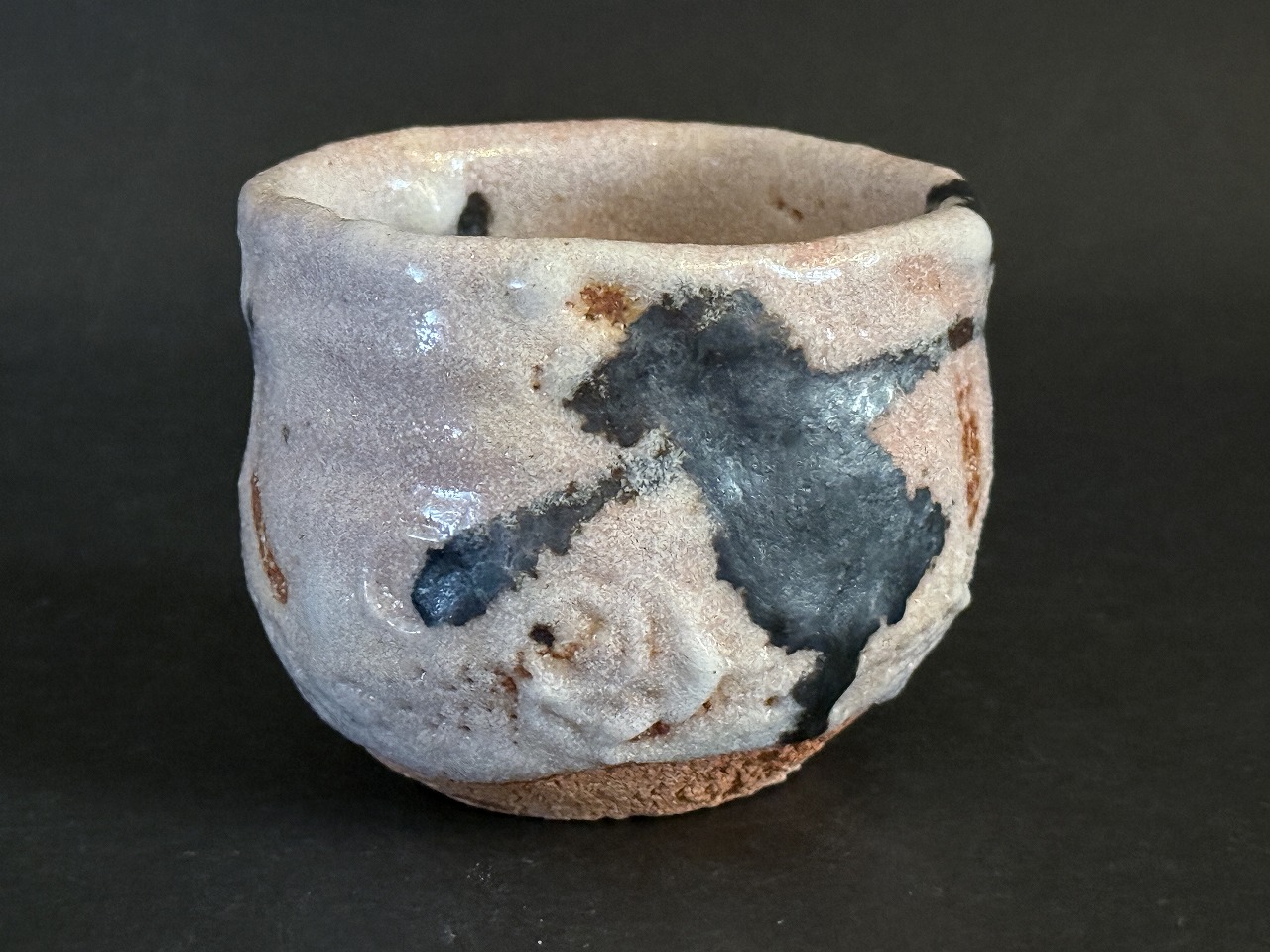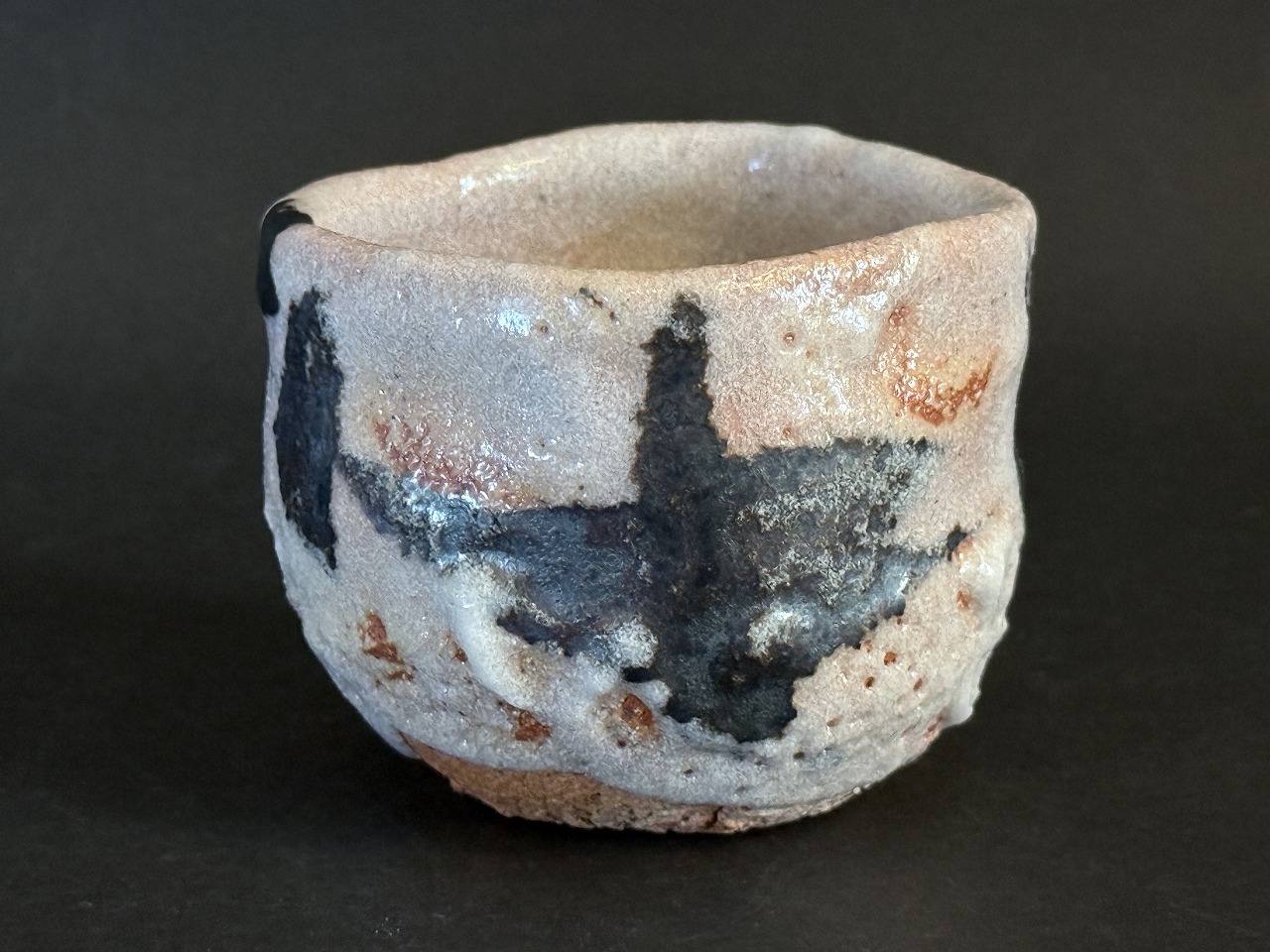 大きな器体に印象的な鬼板の入った志野ぐい吞は長石もよく溶けて発色の良い力作です