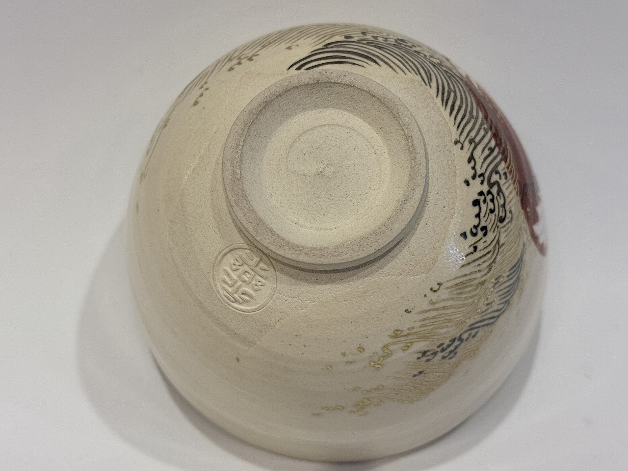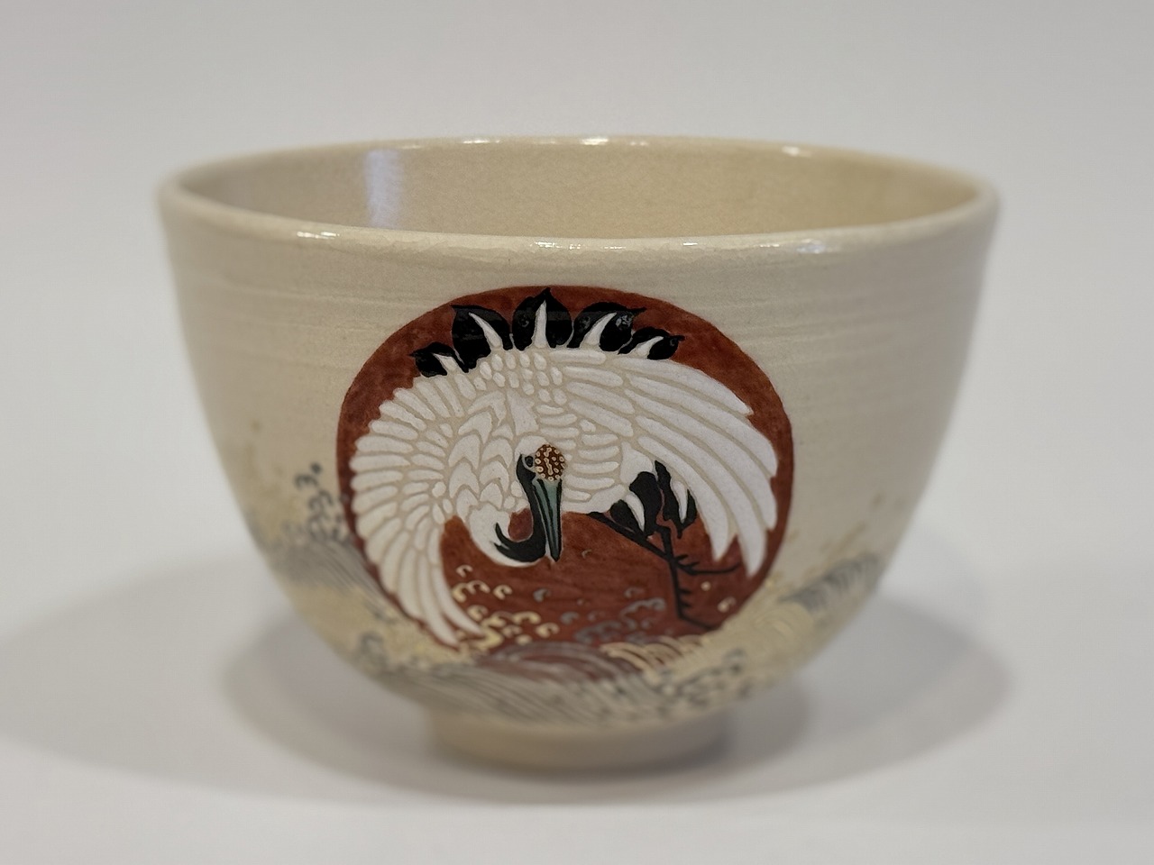 仁清写しの日の出鶴お茶碗は年明けの華やかなお席に相応しい逸品です