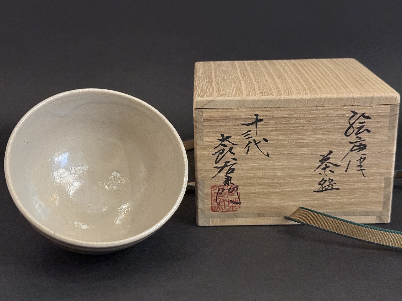 唐津焼の名門太郎右衛門窯の13代太郎右衛門の絵唐津茶碗は洒脱な絵付けにバランスよく釉薬が掛かり気軽に喫茶の楽しめる逸品です
