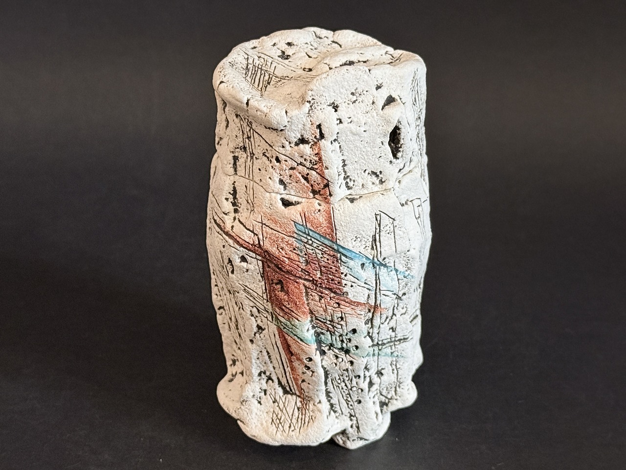 その姿にはいかにも手づくねで造られた温かみがあり和にも洋にも映りそうな趣の力作です