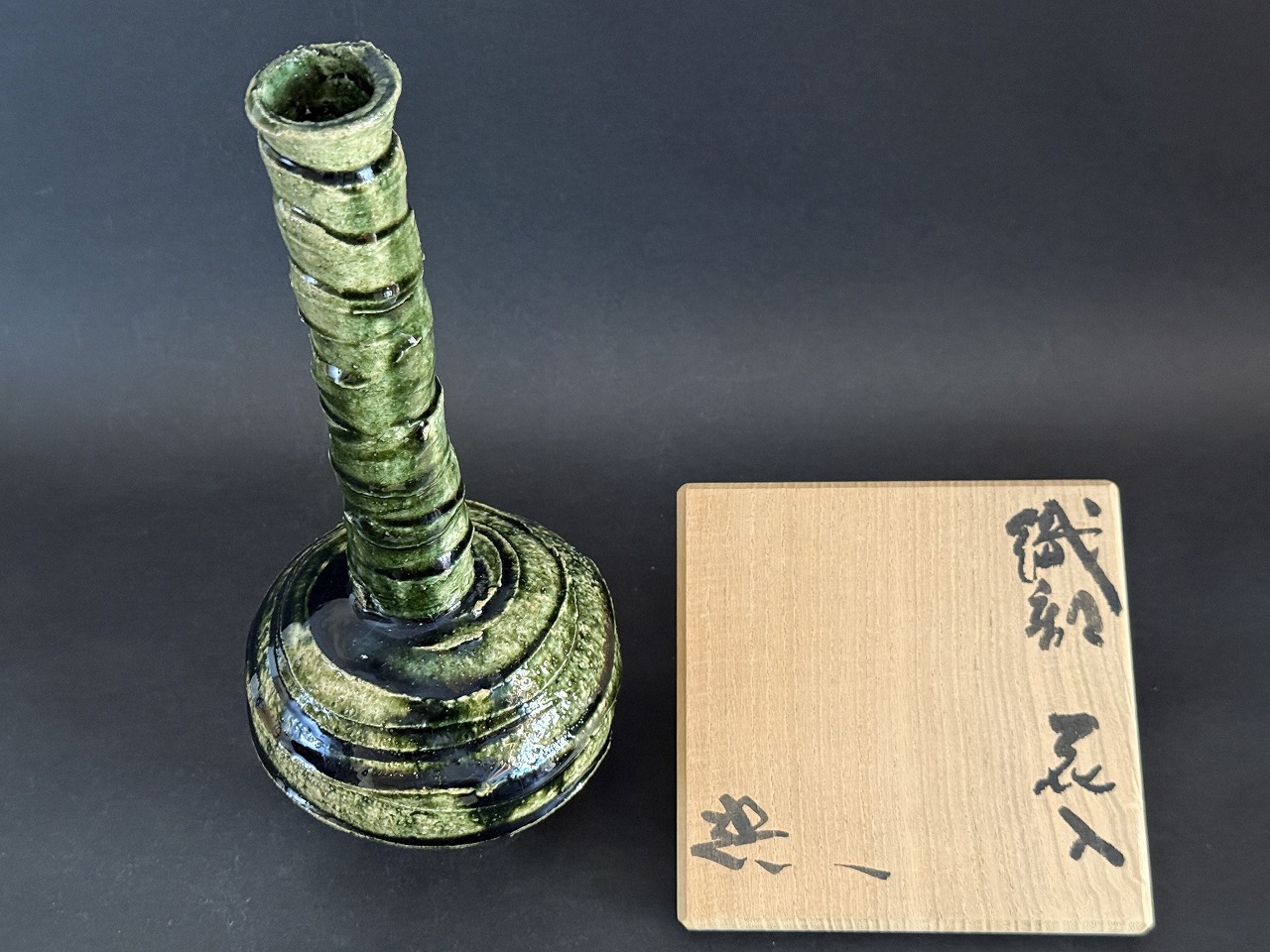 明るい色調に轆轤目が際立つ氏ならではの総織部一輪生です