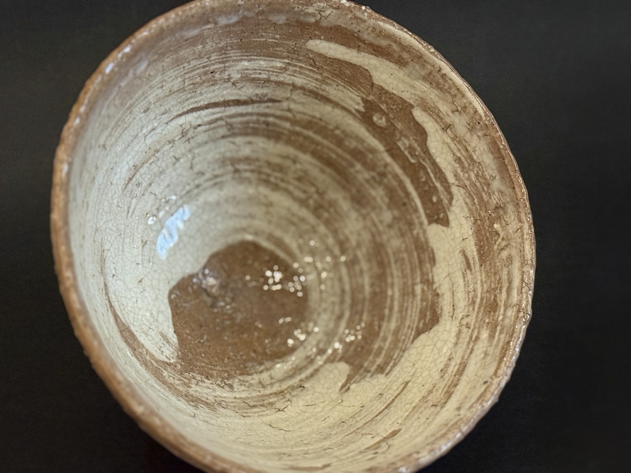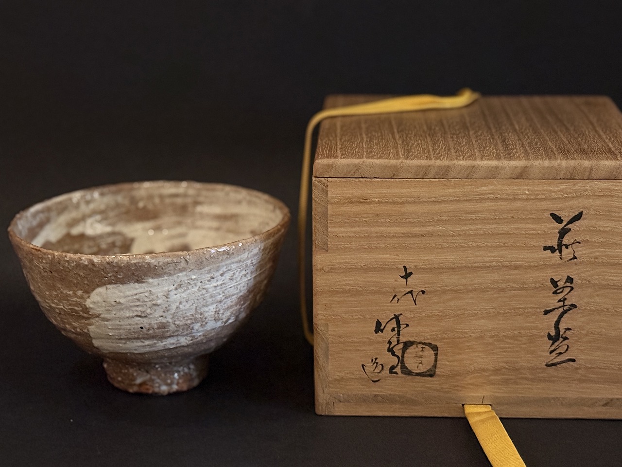 内外全面に施された白い刷毛目が印象的で高めの力強い高台とキリッとした姿が休和休雪には珍しい優品です