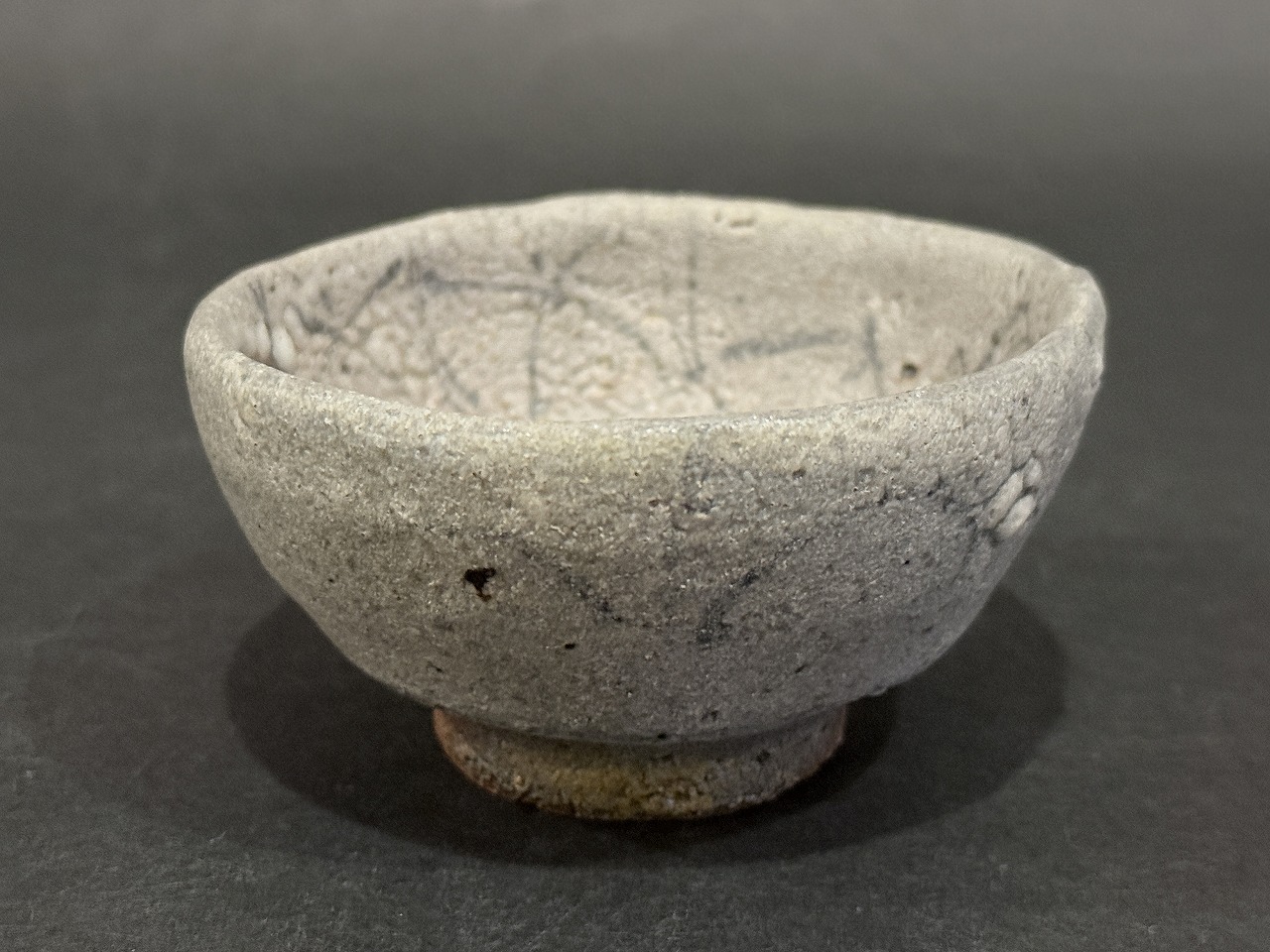 長年古唐津の探求に勤しんでみえる氏の野趣み溢れる絵唐津ぐい吞は平盃に近く、お酒の香りをより一層楽しめる名器です