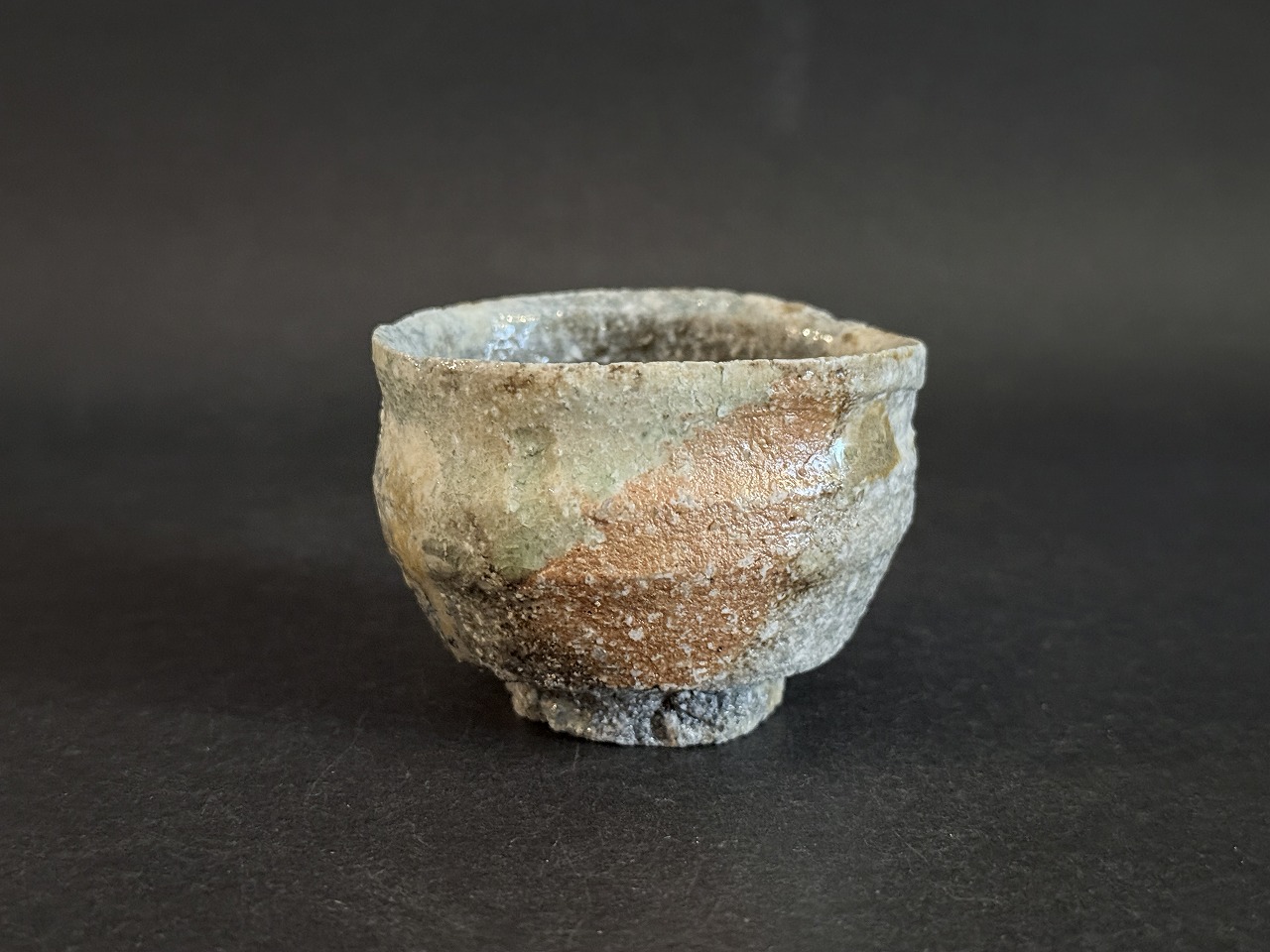 何昼夜にわたり強い火力で焼成され自然釉がよく溶けた信楽焼の窯変ぐい吞は収まりが良く口造りがシャープに削られた扱い易い秀作です