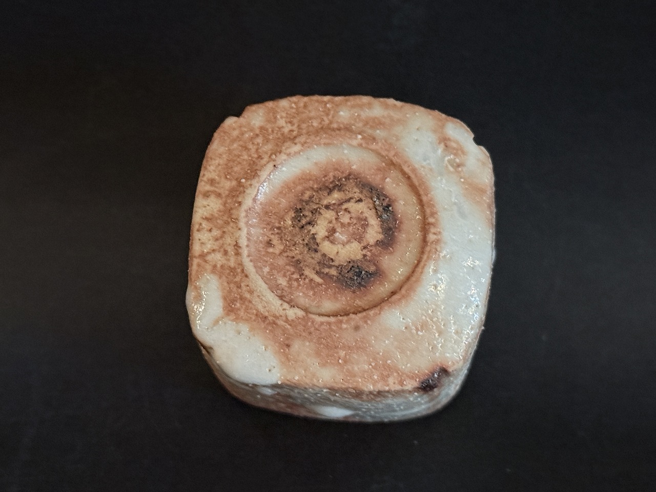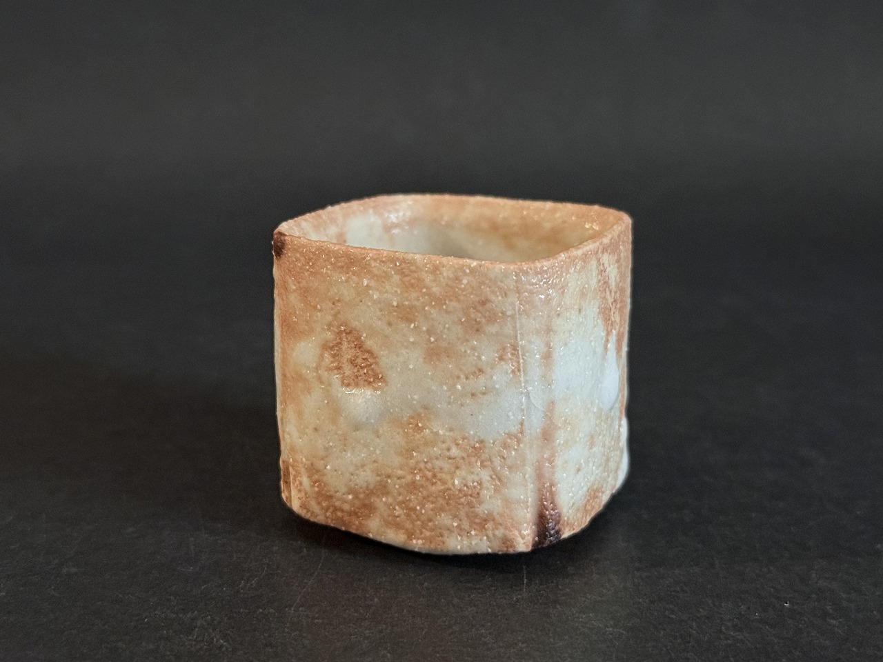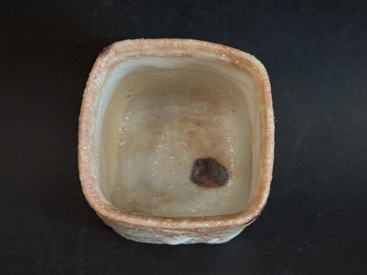 白い長石に明るい発色の火色がバランスよく表れた薄造りで上品な小ぶりの逸品です
