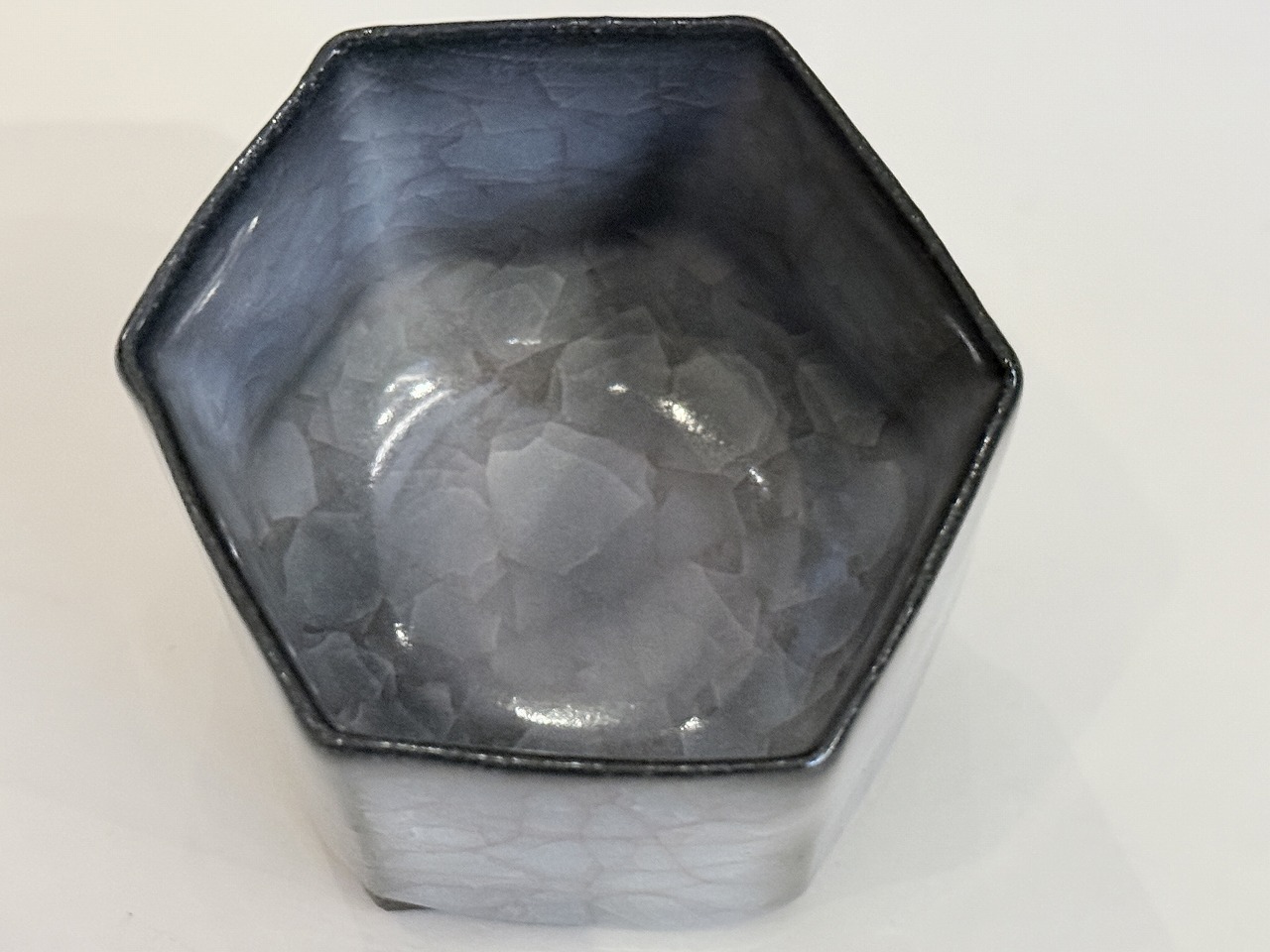 綺麗に貫入の入った明るい色調の青瓷六角盃は大きさの割に手取りが良く毎日楽しんでいただける逸品です