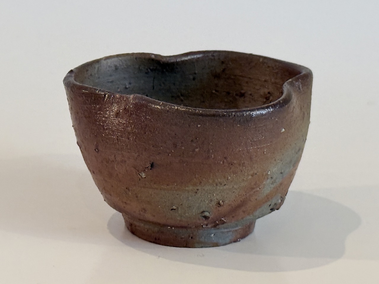 薄く挽かれた器体の口縁部を三方押さえた優しい姿の備前ぐい吞は腰に石ハゼも見られ使い込むほどに味わい深くなる上品な逸品です