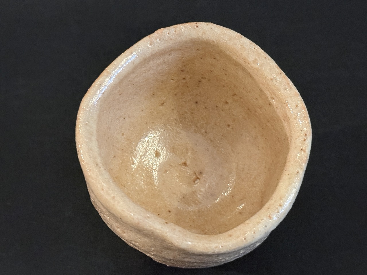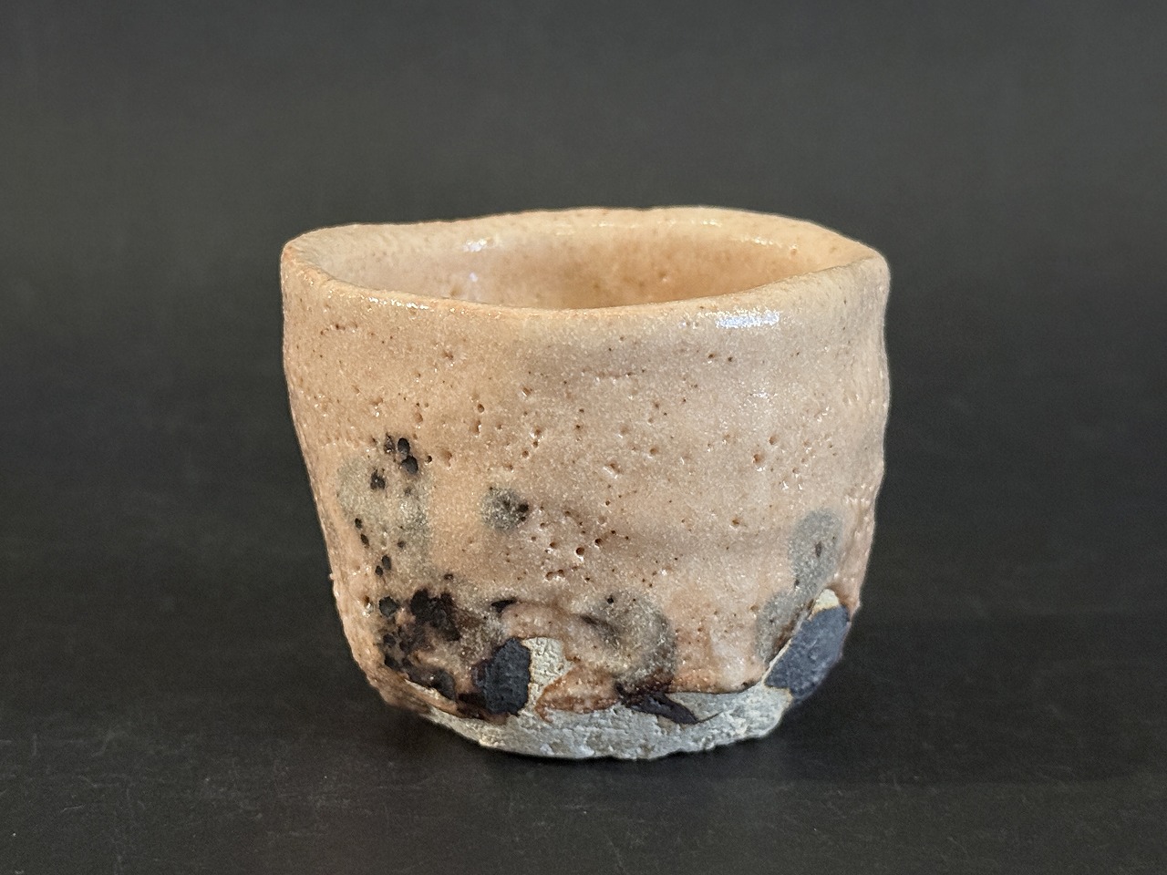 ほんのり発色した桜色に控えめな鬼板が入った優しい趣の志野ぐい呑は収まりがよく扱い易い逸品です