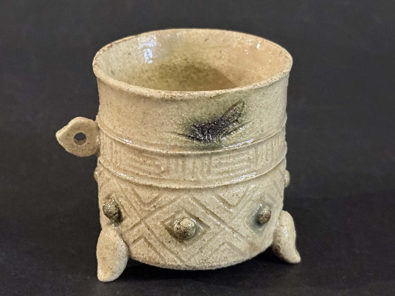 銅器を意匠とした発色の良い繊細な姿の黄瀬戸ぐい吞は手取りも良く使っても飾ってもの逸品です