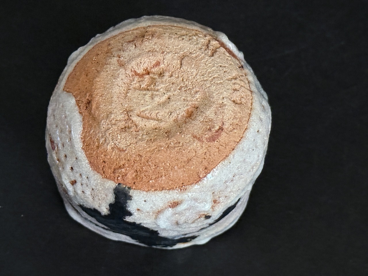 大きな器体に印象的な鬼板の入った志野ぐい吞は長石もよく溶けて発色の良い力作です